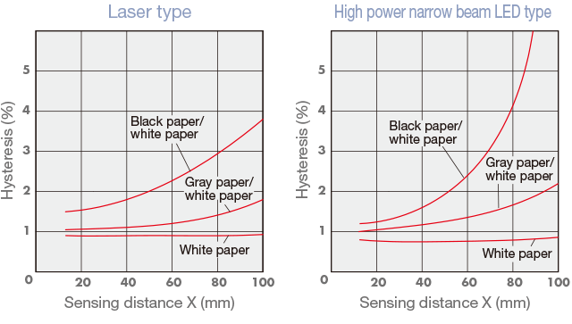 *Đối với loại tầm trung (khoảng cách cảm biến 300 mm) đạt độ trễ ≤ 5%.